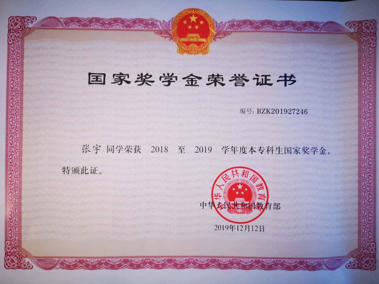“国家奖学金”是党和政府为建设创新型国家和人力资源强国、实现教育优先发展和促进教育公平的重要体现,是激发大学生努力学习、奋发成才的重要举措,是更好地推动育人工作开展的重要载体。我院水利系水利水电建筑工程1806班张宇同学获得2018-2019学年国家奖学金荣誉。