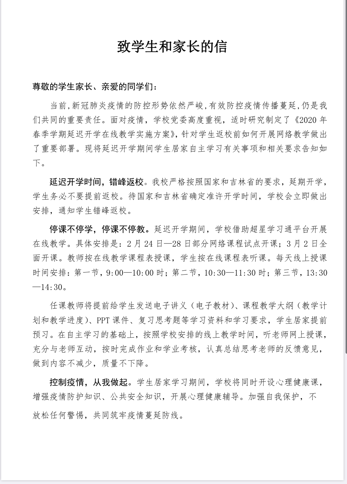 疫情期间,响应教务处《致学生和家长的信》的动员号召,停课是生命的保护,不停学是梦想的追求,我们一定会同舟共济,共克时艰。