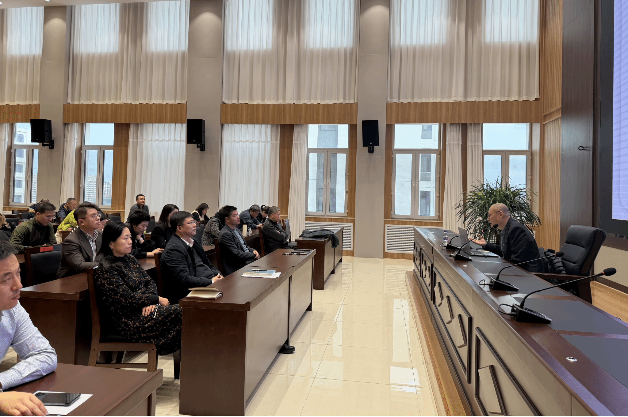 11月24日下午,以“筑牢思想根基 锻造先锋队伍”为主题的党员干部培训班开展专题培训,重点开设《学习贯彻习近平总书记关于党的建设的重要思想 以勇于自我革命精神落实全面从严治党政治责任》与《提升领导干部科学决策能力》两大专题课程。学院副科级及以上干部、全体思政课教师共同参与培训,本次活动分别由学院党委副书记陈延民与马克思主义学院副院长韩玉琦主持。