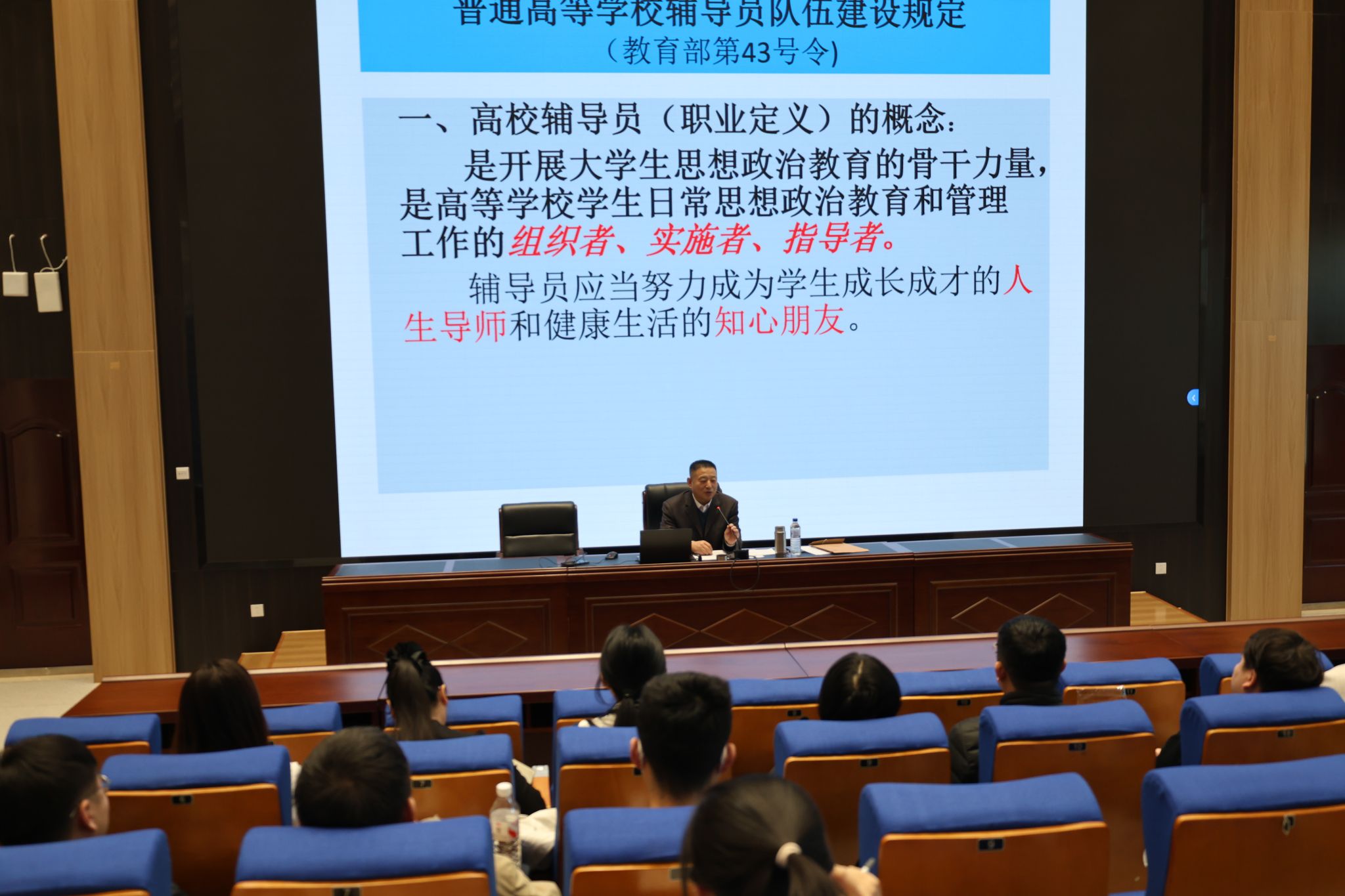 本次培训紧紧围绕辅导员专业发展与学生工作实践需求,科学设置专业成长路径规划、教育管理实务、心理健康教育、学生资助工作、学籍管理、档案管理、医保政策及征兵政策等核心课程模块。采取专题授课、案例分析、经验交流等多元化教学形式,组织校内外专家开展授课,突出政策理论指导与实践操作技能的有机融合,切实提升辅导员队伍解决实际问题的专业能力。