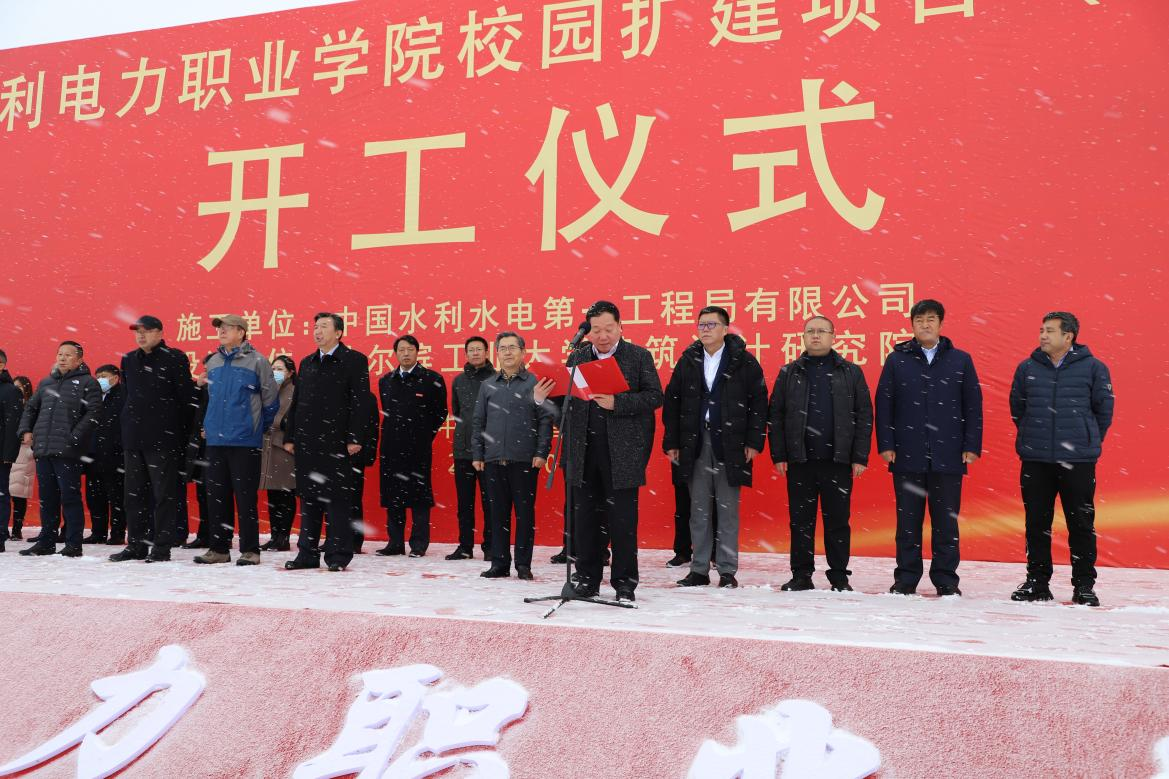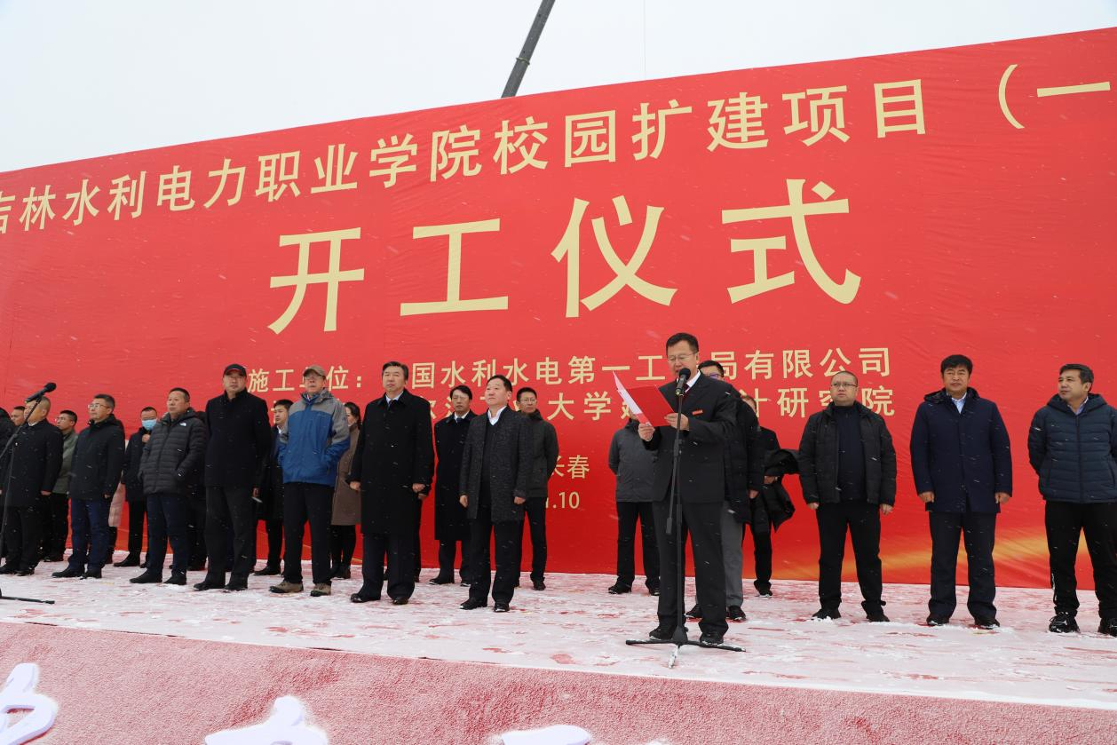 中国水利水电第一工程局有限公司党委书记、董事长闫英才代表公司对工程的正式开工表示热烈的祝贺。他指出,这次校园扩建工程建设项目是吉林水利电力职业学院为加快校园标准化,提高教育教学水平实施的重要工程,是学校不断提升硬件条件,推动高质量办学的重要举措,水电一局与水电学院根出同源,目标一致,一定会珍惜合作机会,集中优势资源,科学组织施工,确保校园扩建工程完美履约,为老师和同学们打造一个功能齐全、环境舒适的新校园。