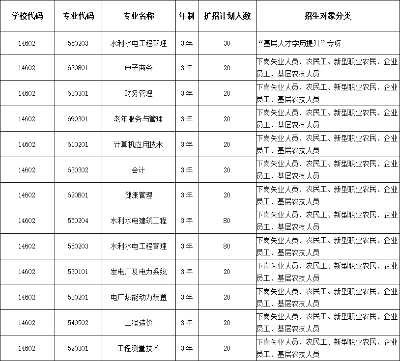 2、退役军人、下岗职工、农民工、新型职业农民、企业员工、基层农技人员免文化素质测试,可直接进行专业志愿填报。(每位考生只能报考一所院校)