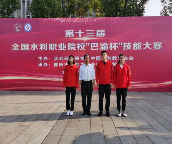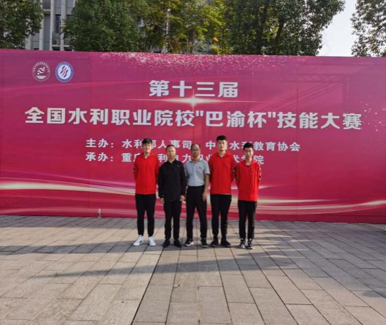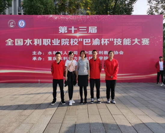 2019年10月,在第十三届全国水利职业院校“巴渝杯”技能大赛中,我校派出 5 支代表队参加了高职组全部 5 个项目的比赛。16名队员中有10人获奖。5人获二等奖,5人获三等奖,其中五名教师获优秀指导教师。我院第二次参赛,在所有参赛的44所院校中综合实力迅速跻身中上游水平。