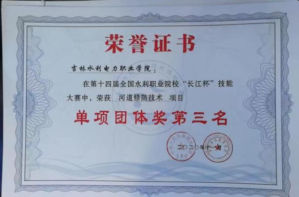2020年11月,在第十四届“长江杯”全国水利职业院校技能大赛中,我系派出4支代表队分别参加了高职组河道修防技术、水利工程成图技术、水利工程造价、节水灌溉技术等四个项目的比赛。其中,河道修防技术项目在27个参赛队中荣获团体第三名的好成绩,是历届参赛新突破。同时,河道修防技术三名队员分获个人二等奖。水利工程成图技术分获个人三等奖。