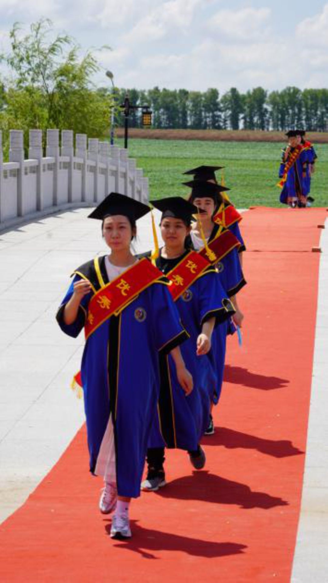 与会的毕业生走过成才桥来到主席台,接受荣誉,这是学院首届毕业生,即将离开校园接受社会的检验。