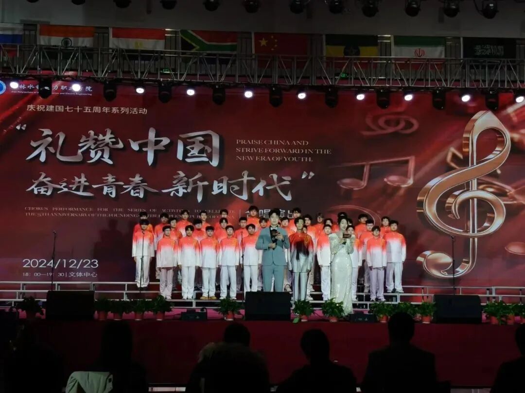 为庆祝中华人民共和国成立75周年,弘扬爱国主义精神,增强校园凝聚力和吸引力,培养学生的荣誉感,努力营造和谐向上、健康文明的校园文化氛围,提高同学们的艺术素养,我校于2024年12月23日在文体中心隆重举行庆祝建国七十五周年系列活动——“礼赞中国・奋进青春新时代”合唱汇演。